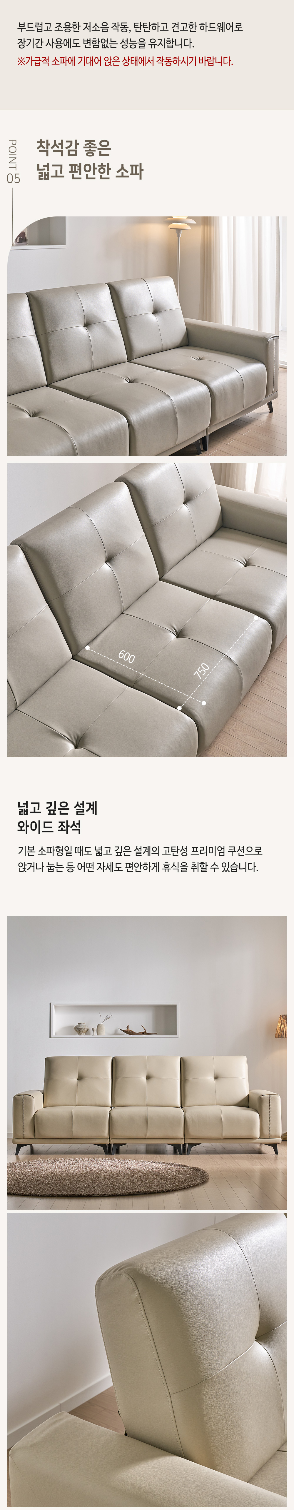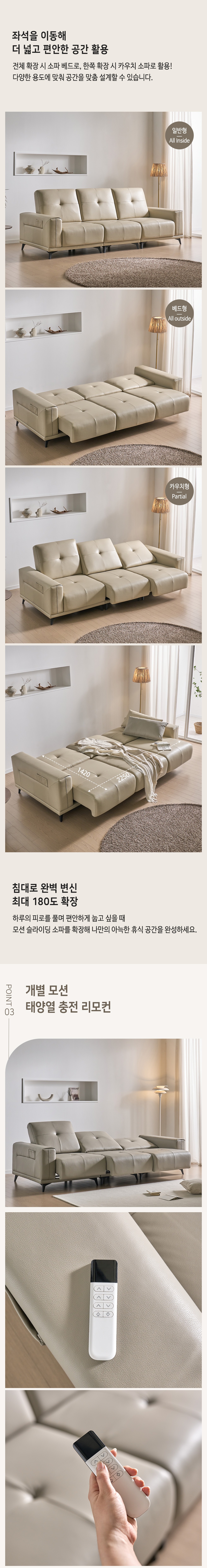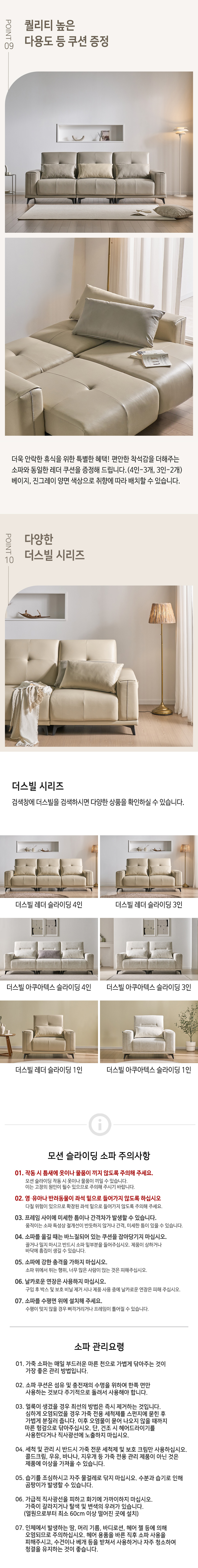 • 더스빌 하이브리드 레더 모션 슬라이딩 무빙 침대 4인 리클라이너 소파