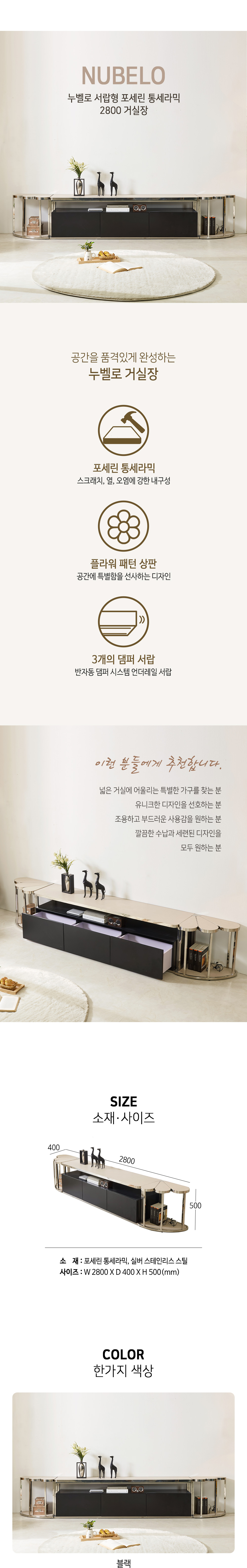 누벨로 서랍 포세린 통세라믹 스텐 스틸 2800 거실장 TV장 1,648,000원 / 배송비 : 무료