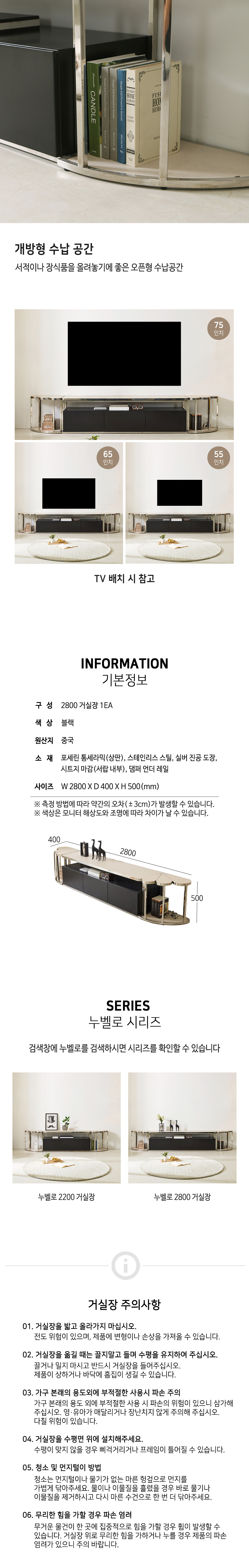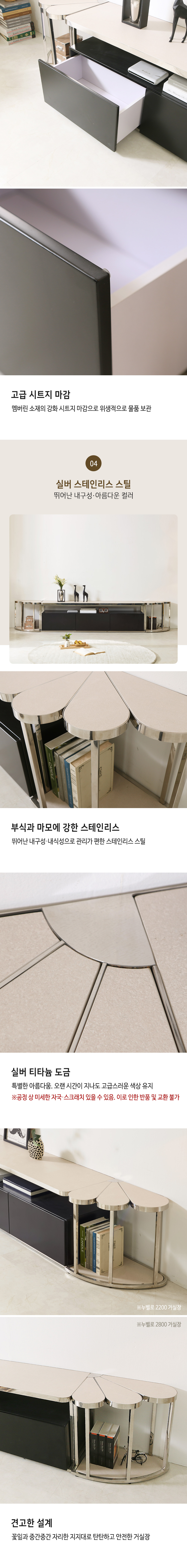이미지 확대보기누벨로 서랍 포세린 통세라믹 스텐 스틸 2800 거실장 TV장